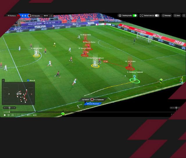 업체는 경기장 내 설치된 인공지능(AI) 카메라를 통해 경기 장면, 선수와 공의 움직임을 촬영하고 분석해 점유율, 패스 길, 주공격 방향 등의 수치부터 전술적 의도까지 각종 데이터로 보여준다.