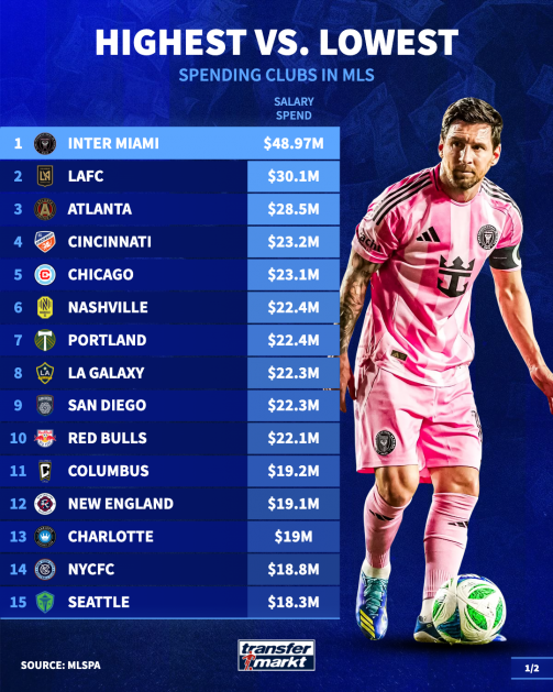 '디 애슬레틱'은 "LAFC와 인터 마이애미 두 팀의 연봉 격차는 다른 27개 구단과 비교해도 압도적 수준"이라고 전했다.
