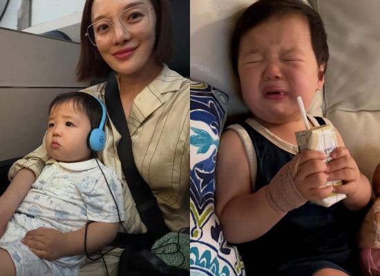 공개한 사진 속에는 황보라의 품에 안겨 비행기를 타고 있는 아들 우인 군의 모습이 담겨 있다. 이어진 사진에서는 짜증이 난 듯 우유팩을 붙잡고 인상을 찌푸리고 있다. 엄마 황보라를 쏙 빼닮은 사랑스러운 이목구비가 미소를 자아낸다.