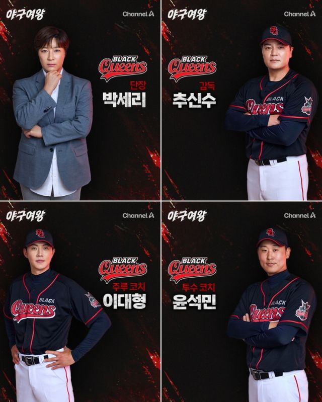 이와 관련해 ‘야구여왕’ 측은 ‘블랙퀸즈’의 단장-감독-코치-선수를 한눈에 볼 수 있는 19인의 공식 프로필을 공개했다. 먼저 ‘블랙퀸즈’를 든든하게 이끌어갈 주역으로, 대한민국 스포츠계의 ‘올 타임 레전드’ 박세리 단장과 ‘레전드 메이저리거’ 추신수 감독이 위엄 넘치는 포즈를 취해 눈길을 끈다. 코치진으로는 ‘4년 연속 도루왕’의 기록을 보유한 이대형과 전 국가대표 에이스 투수 윤석민이 부임, 각각 주루 코치와 투수 코치로서의 ‘일타 강의’를 예고한다.