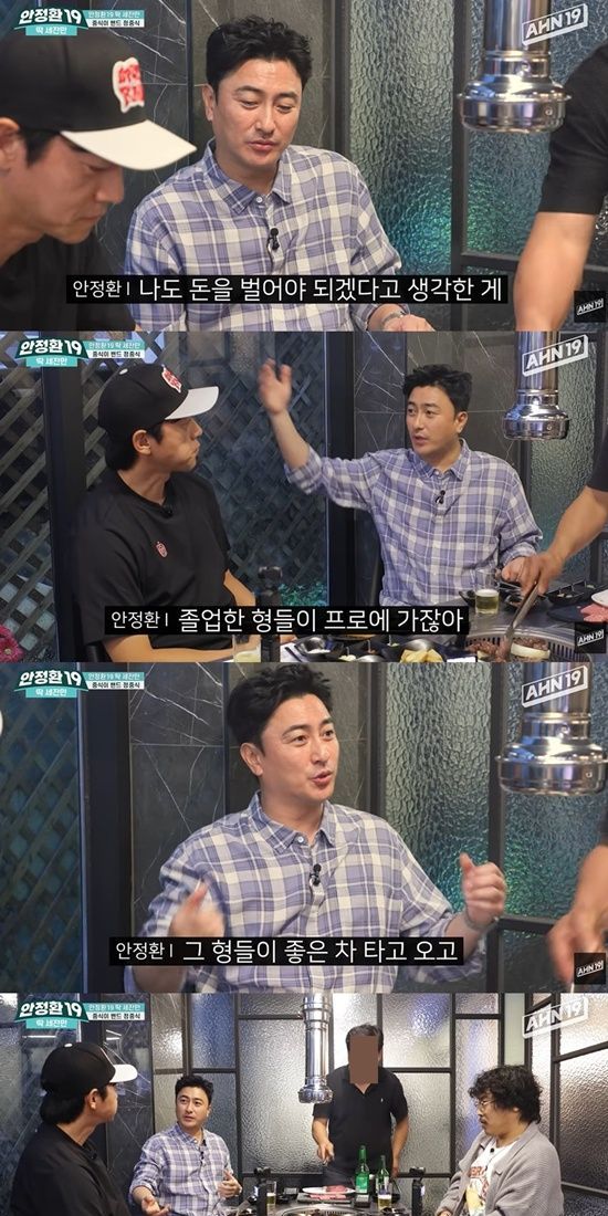 안정환은 "돈을 벌어야 되겠다고 생각한 게 대학교 때였다. 그때는 축구부였다. 대학교 가서 축구하고 있는데 졸업한 형들이 프로에 가지 않냐. 그 형들이 좋은 차 타고 오고, 좋은 옷 입고 오고, 그다음에 오면 용돈을 50만 원씩 주는 거다. 그 당시 50만 원이면 한 달을 먹고 살 수 있다"라고 회상했다.
