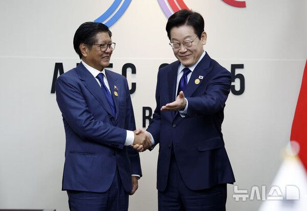 뉴시스 보도에 따르면, 이 대통령은 이날 오후 경북 경주 화백컨벤션센터에서 페르디난도 로무알데즈 마르코스 주니어 필리핀 대통령과 만나 "아주 많은 세월 동안 한국과 필리핀이 우방 국가로서 서로 지원하고 협력해 왔지만, 오늘 대통령님의 방문을 계기로 더 높은 단계의 밀도 있는 협력 관계가 맺어지길 기대한다"고 말했다.