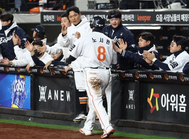 한화는 변수에도 쉽게 흔들리지 않았다. 2회 말 선두 타자 노시환이 중전 안타를 치고 나갔다. 채은성이 삼진으로 돌아섰으나 하주석의 2루타가 나오며 1사 2, 3루를 만들었다. 여기에 최재훈이 볼넷을 골라내며 1사 만루가 됐다. 한화는 이원석의 유격수 땅볼 때 3루 주자 노시환이 홈을 밟으며 동점을 만들었다.