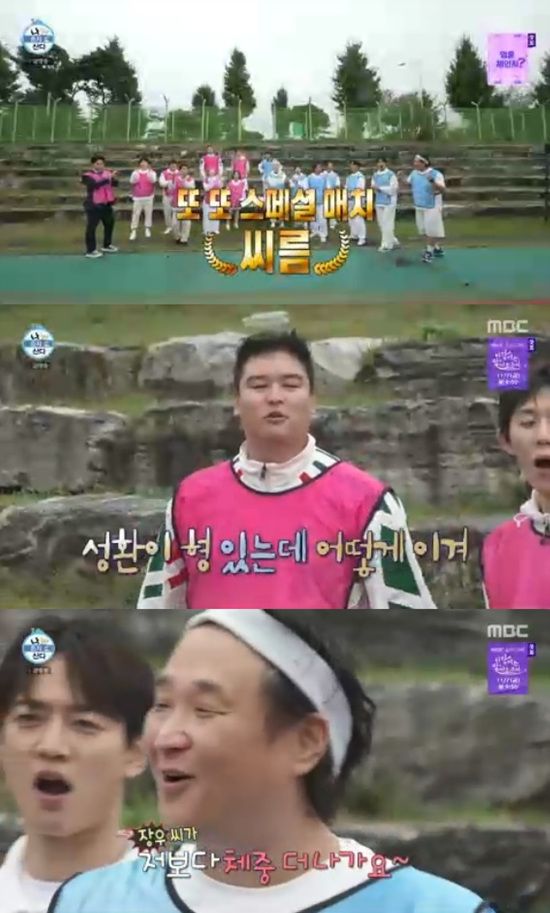 이장우는 씨름이라는 말을 듣더니 "성환이 형 있는데 어떻게 이기느냐"라고 불평했다.