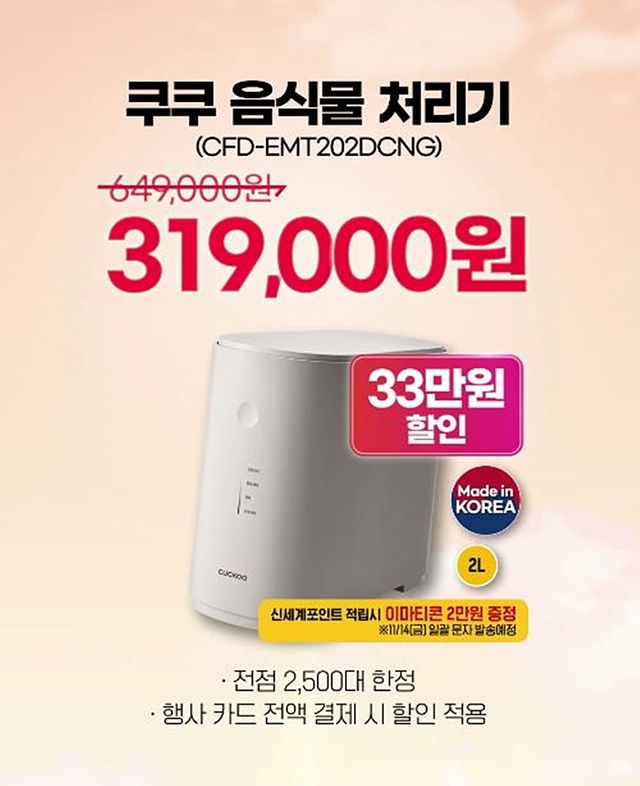 다음은 이마트의 '쿠쿠 음식물 처리기' 할인 행사 안내 이미지다.