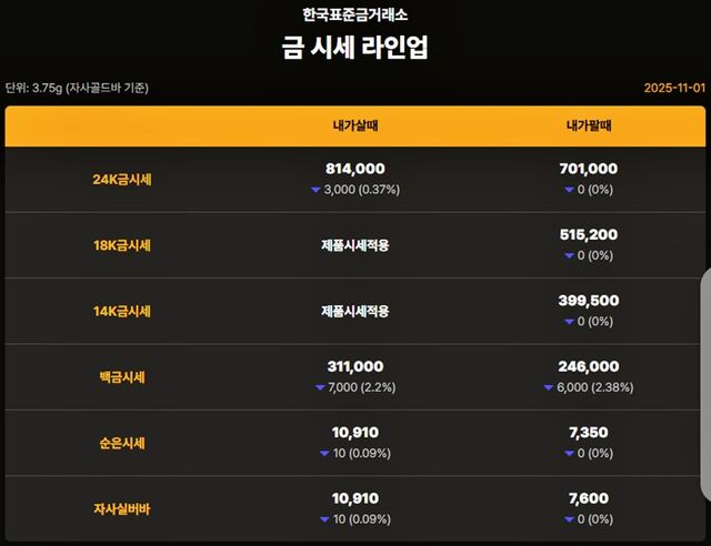 순금(24K) : 매입가 81만 5000원 / 매도가 70만 원