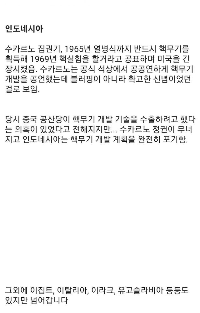 본문에 나오지 않지만 노르웨이도 핵무기 개발을 시도한 일이 있다고 합니다.