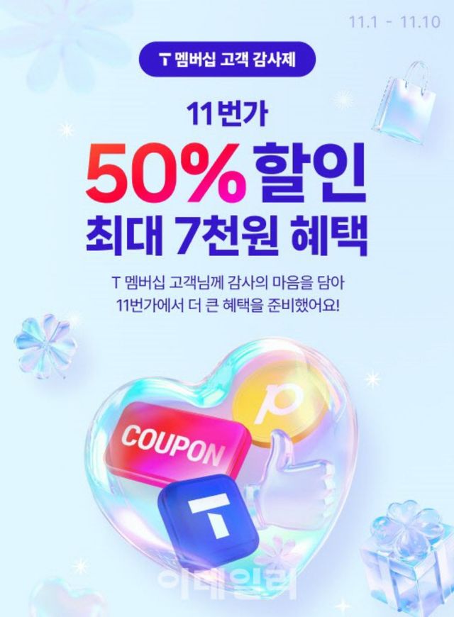 11번가는 SK텔레콤과 함께 T멤버십 50% 할인 혜택을 제공하는 ‘T멤버십 고객 감사제’ 프로모션을 진행한다고 지난 31일 밝혔다.