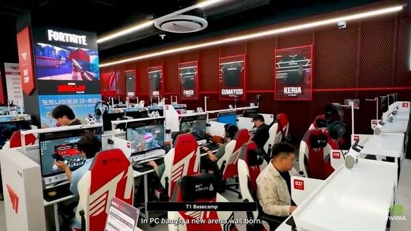 게임 '스타크래프트'라는 하나의 불꽃이 피어났다면서 "피시방이라는 새로운 경기장이 탄생했고, 엔비디아 지포스는 새로운 플레이어들의 장비가 됐다"며 한국과 인연을 조명했다.