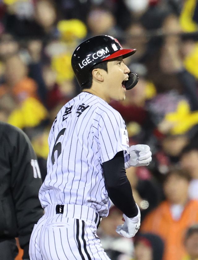 그러나 구본혁의 과감한 선택은 대성공이었다. 번트 파울로 2볼-2스트라이크에 몰린 문현빈은 4-6-3으로 이어지는 병살타로 아웃됐다. 그 순간 구본혁은 '어퍼컷 세리머니'를 했다. 그는 "나는 공을 잡지도 않았는데, 내가 더 크게 세리머니했다"라며 "코치님, 선배들이 '잘했다'고 칭찬하셨다"고 웃었다.