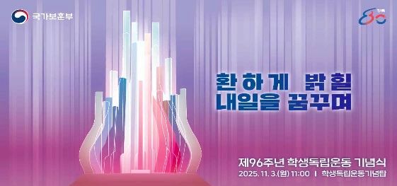 국가보훈부는 일제의 차별과 불의에 항거해 일어난 학생독립운동을 기억하기 위해 '제96주년 학생독립운동 기념식'을 3일 오전 광주광역시 서구 학생독립운동기념탑에서 거행한다고 밝혔다.