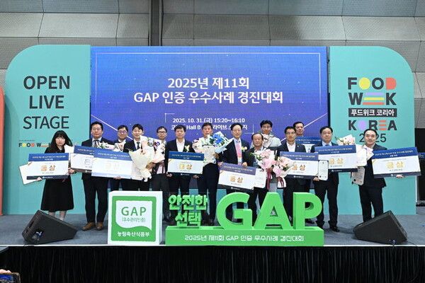 뉴시스 보도에 따르면, 국립농산물품질관리원은 제11회 농산물우수관리(GAP) 인증 우수사례 경진대회를 개최하고 지난달 31일 서울 코엑스에서 GAP 인증 우수농가, 유통업체, 지방자치단체 등 우수사례를 선정·시상했다고 2일 밝혔다.