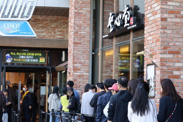대전 유성구 성심당 DCC점에 긴 줄이 늘어서 있다. / 연합뉴스
