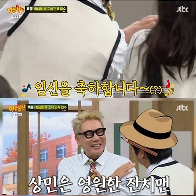 이날 이상민은 “나 최초 공개하겠다”며 의미심장하게 운을 뗐다. 이에 이수근은 “또 뭐를 최초 공개하냐”며 의아해했고, 형님들은 이상민의 볼록 나온 배를 보고 “임신했어?”라며 장난을 쳤다. 급기야 “임신 축하합니다!”라는 축하송까지 터져나오며 스튜디오가 웃음으로 가득 찼다.