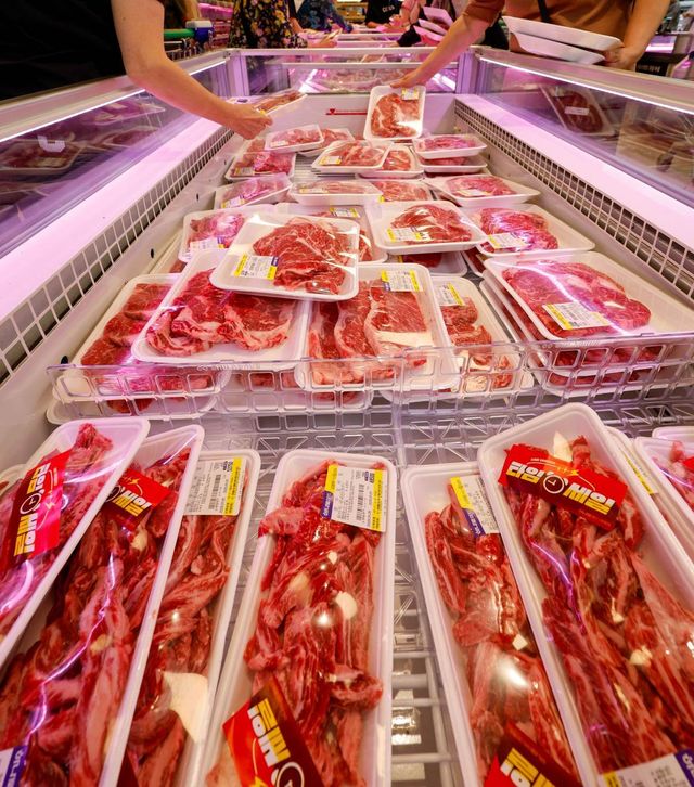 마트에서 고객들이 한우를 고르는 모습. / 뉴스1