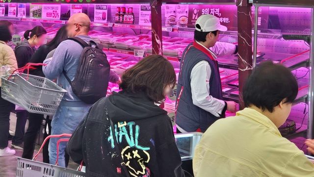마트에서 한우를 쇼핑하는 사람들의 모습. / 롯데쇼핑 제공-뉴스1