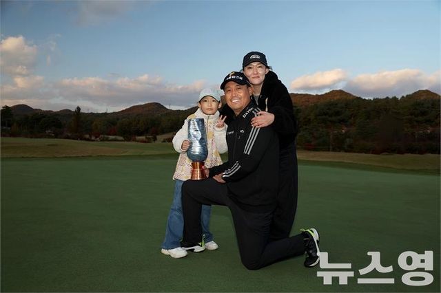 김재호가 가족과 함께 우승을 기뻐하고 있다/사진=KPGA