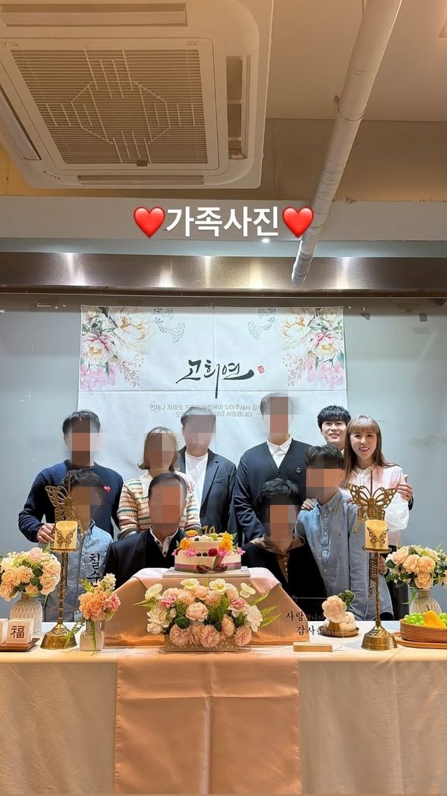 사진 속에는 신지 아버지의 고희연을 맞아 함께 자리한 가족들의 모습이 담겨 있다. 신지의 언니와 형부, 조카들, 남동생들이 함께한 가운데 신지 옆에 자리한 예비 남편 문원의 존재가 눈길을 끈다. 문원은 신지의 뒤에서 어깨를 감싸며 환하게 웃고 있다.
