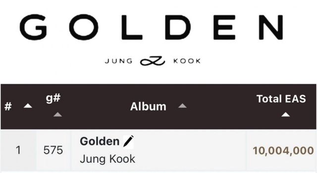 방탄소년단(BTS) 정국의 첫 솔로 앨범 ‘GOLDEN’이 1000만 앨범 세일즈(EAS)를 넘어서는 대기록을 세우며 글로벌 팝스타로서의 초강력 위상을 다시 한번 증명했다. 단 하나의 솔로 앨범으로 이룬 성과라는 점에서 K-팝 솔로 아티스트 역사에 새로운 이정표를 남겼다는 평가다.