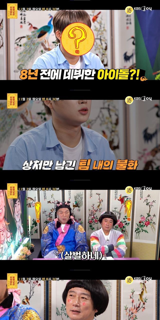사연자는 그룹 ‘마스크’에서 서브 보컬로 활동했다. 사연자는 데뷔곡 활동 후 다음 앨범 준비 중이던 어느 날, 주인 모를 우산을 들고 내려갔다가 팀 내 멤버에게 폭언과 폭행을 당했다고 회상한다. 사연자는 “억울한 마음에 말을 걸자, 형이 우산을 벽에 내리치고 머리와 얼굴을 쳤다”라며 팀 탈퇴로 이어진 사건을 고백한다.