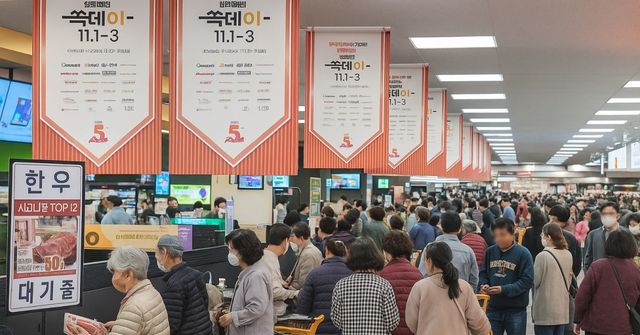쇼핑축제 '쓱데이'가 개막한 1일 서울 용산구 이마트 용산점에서 고객들이 개점 전부터 줄을 서 있다. / 이마트 제공