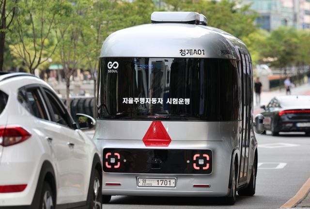 # 서울 종로구 청계천 일대를 달리는 자율주행 셔틀 ‘청계A01’이 지난 9월 23일 첫 운행에 들어갔다. 청계A01은 청계광장에서부터 청계5가(광장시장)까지 왕복 4.8km 구간을 운행하며 총 11개의 정류소에 정차한다. 청계A01은 시험운전자가 운전석에 탑승·운행하는 기존 자율주행 버스와 달리 운전석과 운전대가 없는 게 특징이다. 탑승자 김모(49)씨는 “영화에서나 보던 자율주행차를 직접 타보니 신기하다”며 “시범운전자가 없어도 자율주행이 가능할지, 앞으로가 기대된다”고 말했다.