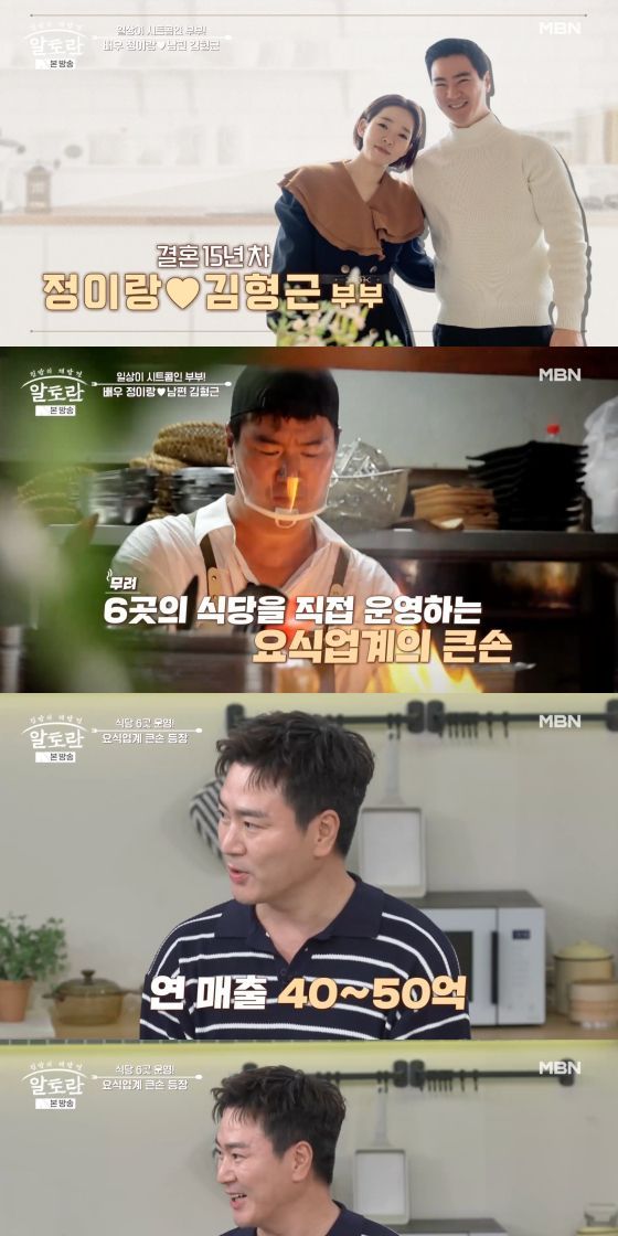 2일 방송된 MBN 예능 프로그램 '알토란'에는 코미디언 정이랑 부부가 출연해 요식업 성공기를 전했다.