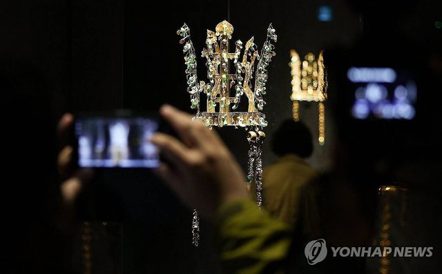 지난달 27일 국립경주박물관에서 열린 아시아태평양경제협력체(APEC) 정상회의·박물관 개관 80주년 기념 특별전 '신라 금관, 권력과 위신' 언론 공개회에서 신라 금관이 공개되고 있다 / 연합뉴스