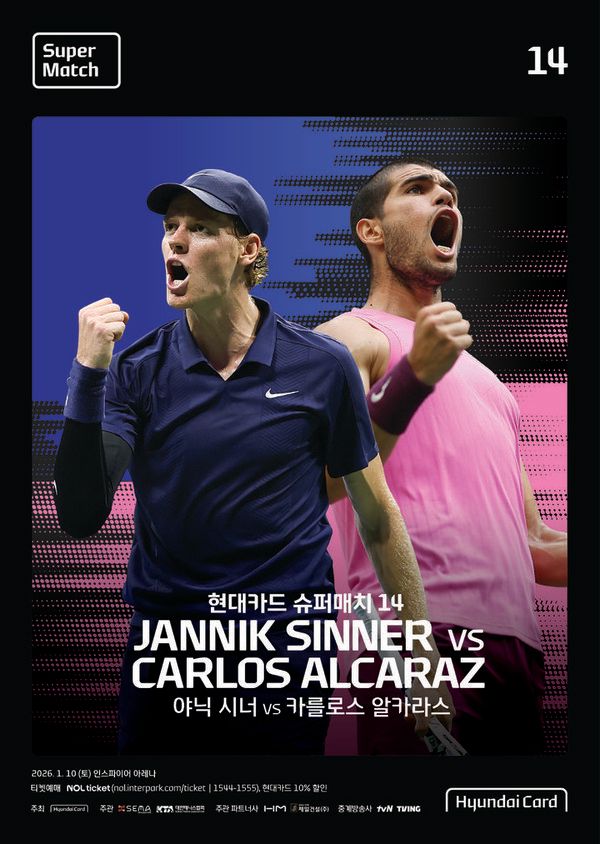 앞서 지난달 말 신네르와 알카라스가 나란히 자신들의 소셜네트워크서비스(SNS) 계정에 "한국에서 만나요(See you in Korea)"라는 글과 함께 '현대카드 슈퍼매치'라는 표기를 달아 한국에서의 맞대결을 예고했다.