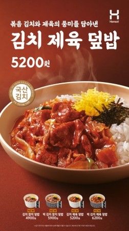 도시락 프랜차이즈 한솥도시락이 국산 김치로 만든 덮밥 시리즈 4종을 출시했다.