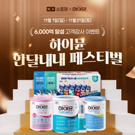 일동후디스가 '하이뮨' 누적 매출 6000억원 달성을 기념해 자사 네이버 브랜드 스토어에서 '하이뮨 한달내내 페스티벌'을 진행한다. 이번 행사는 오는 30일까지 열린다.