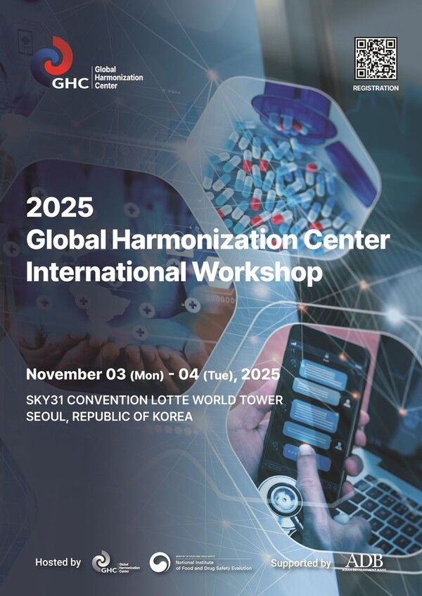 뉴시스 보도에 따르면, 식약처 소속 식품의약품안전평가원 글로벌 규제조화센터(GHC)는 '2025년 글로벌 규제조화센터(GHC) 국제워크숍'을 3일부터 이틀간 롯데월드타워 스카이31컨벤션에서 개최한다고 밝혔다.