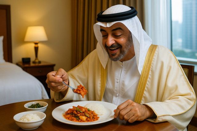 3일 연합뉴스에 따르면 국제통화기금(IMF)과 특별 초청국으로 경주에 온 칼리드 빈 모하메드 빈 자이드 알 나흐얀 UAE 아부다비 왕세자는 부산 아난티 코브에 투숙했는데 UAE 왕실과 대표단은 호텔 한식 메뉴 중 볶음김치를 특히 좋아한 것으로 전해졌다.