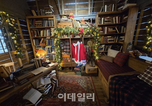 전시는 △산타의 집 △편지공방 △선물공방 △포장공방 △루돌프의 집 등 다섯 채의 오두막 공방으로 구성했다. 모두 중세 유럽 코티지를 모티브로, 굴뚝과 삼각 지붕, 테라스까지 정교하게 재현했다. 내부에는 손편지 1000장이 공중에 걸려 있는데, 모두 수작업으로 한 장씩 제작됐다. 리본 역시 직원 10명이 열흘에 걸쳐 직접 묶어 완성했다. 특히 ‘선물공방’에는 해리가 케이크와 장난감을 만드는 장면, 동물 캐릭터가 움직이는 키네틱 아트, 전 세계 마을을 표현한 미니어처 디오라마가 시선을 붙든다.