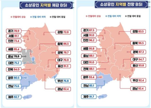 반면 같은 기간 전통시장 체감 BSI는 89.8로 전월(75.5) 대비 14.3p 급등하며 회복세를 나타냈다. 이는 전국 평균(78.5)을 상회한 수치로, 전국에서 가장 큰 상승폭을 기록했다.