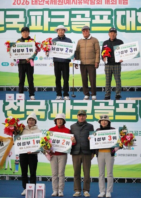 한편 '2026 태안국제원예치유박람회 개최 기념 전국 파크골프대회' 1위부터 10위까지 수상자는 다음과 같다.