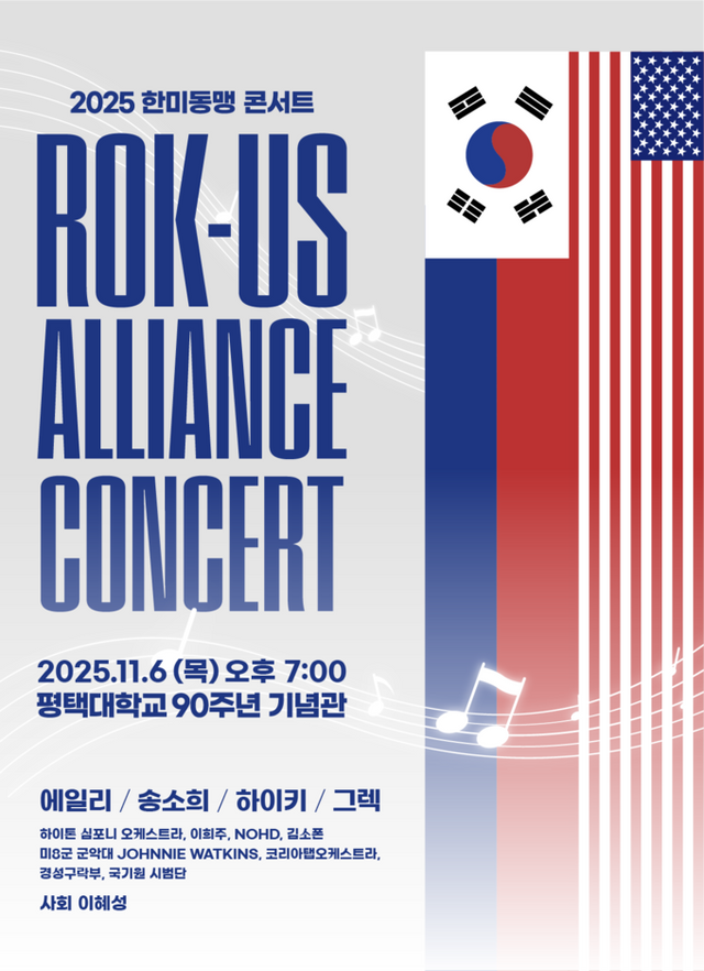 [와이뉴스] 한미연합군사령부(이하 연합사)는 오는 11월 6일 평택대학교 90주년 기념관에서 ‘2025년 한미동맹 콘서트’를 개최한다.