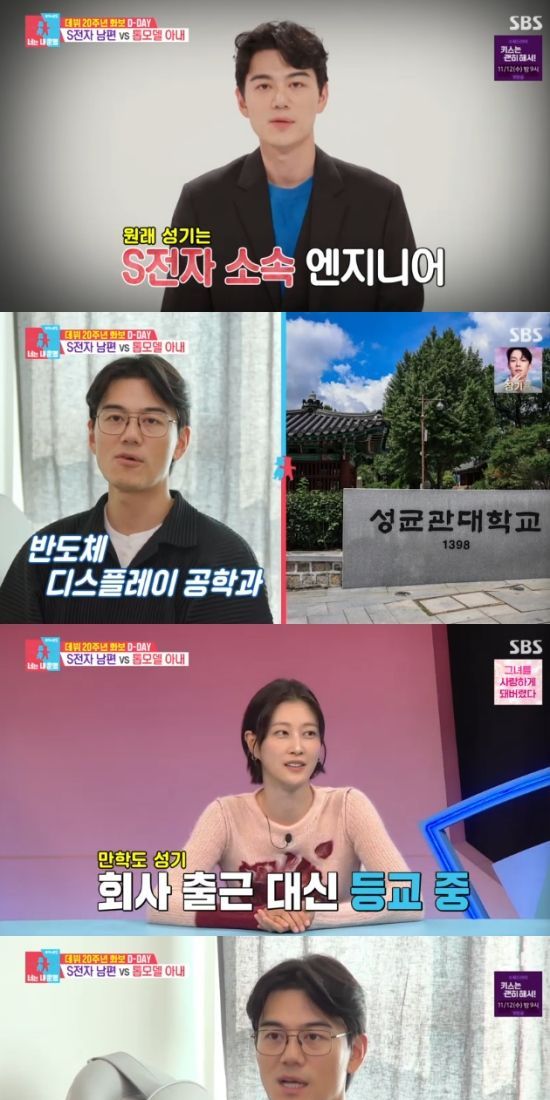 홍성기는 "올해 3월에 부장으로 진급을 했다. 입사 17년만"이라면서 "지금은 회사 양성 과정 중 하나로 성균관대학교 반도체 디스플레이 공학과 석사과정 중이다. 2학기 째 다니고 있다. 월급도 나오고, 학비도 회사에서 지원을 해준다"고 전했다.