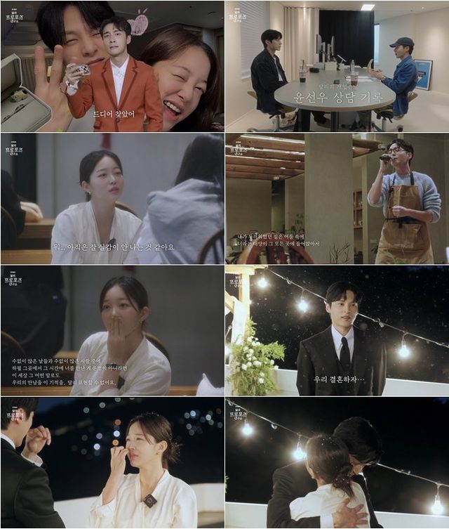 이어 윤선우는 “우리 결혼하자. 내 아내가 돼 줘. 내 가족이 돼주라, 김가은”이라고 10년 전 두 사람이 함께했던 작품 속 대사를 다시 꺼내며 반지를 건네자, 김가은은 “그래, 고마워”라며 눈물을 쏟았다. 두 사람은 서로를 꼭 끌어안으며 긴 세월의 사랑을 따뜻하게 마무리했다. 윤선우와 김가은은 2014년 KBS2 드라마 ‘일편단심 민들레’로 인연을 맺은 뒤 10년 열애 끝에 지난달 26일 결혼식을 올렸다.