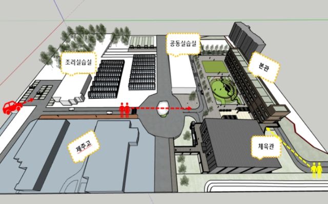 학교는 지상 3층 규모의 모듈러 교실, 다목적체육관, 4동의 실습동으로 구성되며 학교 신설에 따라 다목적체육관 및 급식소 증축, 어울림마당과 운동장 조성, 실습실 리모델링도 추진된다.