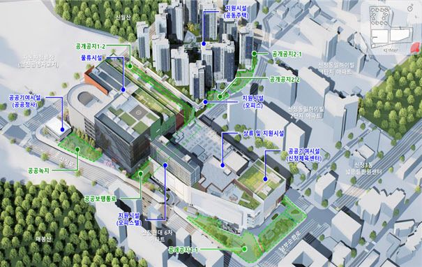 또 창업기업 입주공간, 창업상담·지원실, 회의공간, 휴게공간, 강당 등으로 구성된 ‘창업지원센터(5421㎡)’와 수영장, 피트니스룸, 스쿼시, 볼링장, 탁구장, 스크린골프, 실내테니스장, 다목적체육관 등을 갖춘 ‘신정 체육센터(1만 7050㎡)’도 신설한다.
