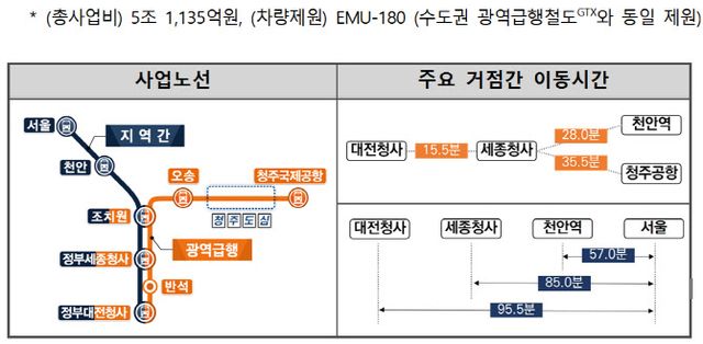 광역급행철도가 개통되면 대전청사, 세종청사, 천안역, 청주공항 등 지역의 주요 거점 간 통행시간이 30분대로 단축된다. 예컨대 대전청사에서 세종청사까지 걸리는 시간이 45분에서 16분으로 단축된다.