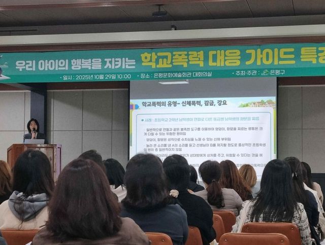 [파이낸셜경제=김영란 기자] 서울 은평구는 지난달 29일 은평문화예술회관 대회의실에서 학부모, 지역 주민 약 100명이 참석한 가운데 ‘우리 아이의 행복을 지키는 학교폭력 예방 및 대응 학부모 특강’을 개최했다고 밝혔다.