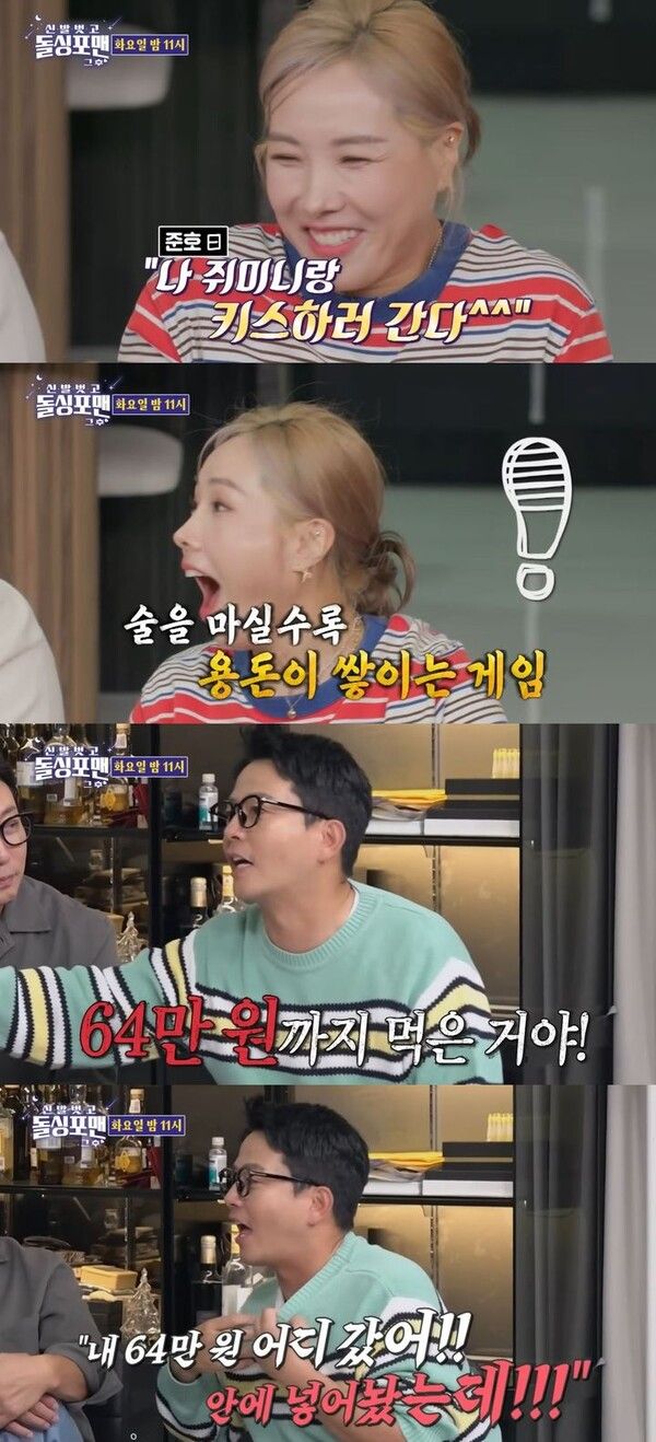 김준호는 "지갑에 있는 돈을 다 줬는데 10분 있다가 돈을 막 뿌리더라"라고 말한다.