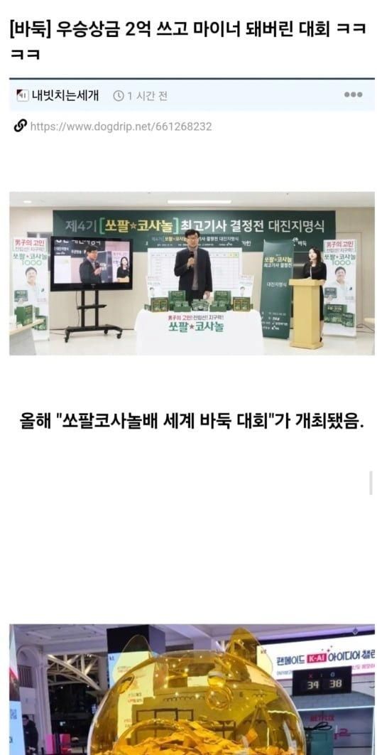 우승 상금 2억 쓰고 마이너가 된 바둑대회