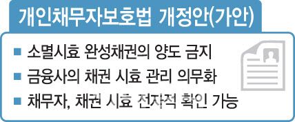 최근 대법원이 이 같은 관행에 제동을 걸며 제도 개선을 추진했다. 대법원 전원합의체(주심 권영준 대법관)는 채무자가 시효완성 후 채무를 일부 변제했더라도 시효완성 사실을 알면서 그 이익을 포기한 것으로 추정할 수 없다고 판시했다. 이 의원이 준비 중인 개정안은 소멸시효가 완성된 채권의 양도를 금지한다. 따라서 채권추심 전문업체가 소멸시효 완성 채권의 소액 변제를 유도해 시효이익을 포기하는 것을 방지할 것으로 보인다.