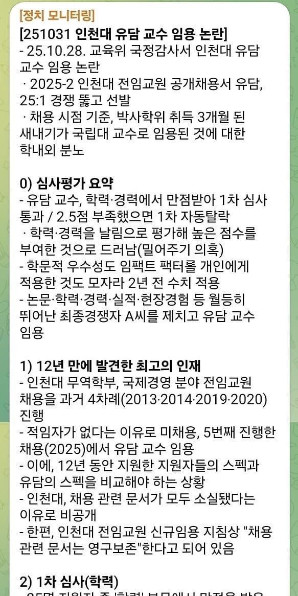 - 25.10.28. 교육위 국정감사서 인천대 유담 교수 임용 논란