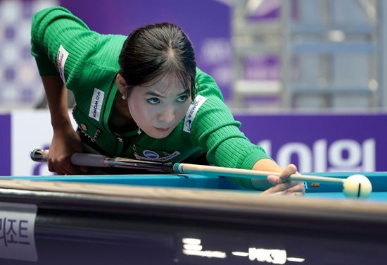 (엑스포츠뉴스 김유민 기자) 여자 프로당구(LPBA) 차세대 스타 정수빈(NH농협카드)이 LPBA 64강서 '기대주' 박정현(하림)을 상대로 하이런 11점을 기록하며 대역전승을 만들었다.
