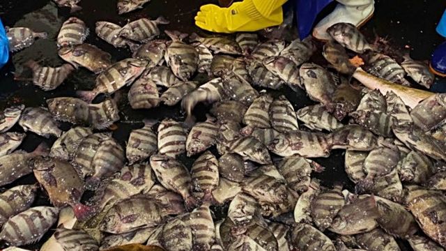 파닥파닥 거리는 돌돔들. 기사 내용을 바탕으로 AI가 생성한 자료사진.