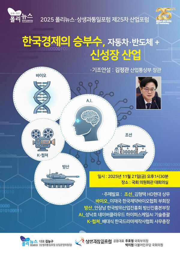 이에 <폴리 뉴스> 와 <상생과통일포럼> 이 함께 '한국경제의 승부수, 반도체·자동차 + 신성장 산업'을 주제로 포럼을 준비했다. 상생과통일포럼> 폴리>